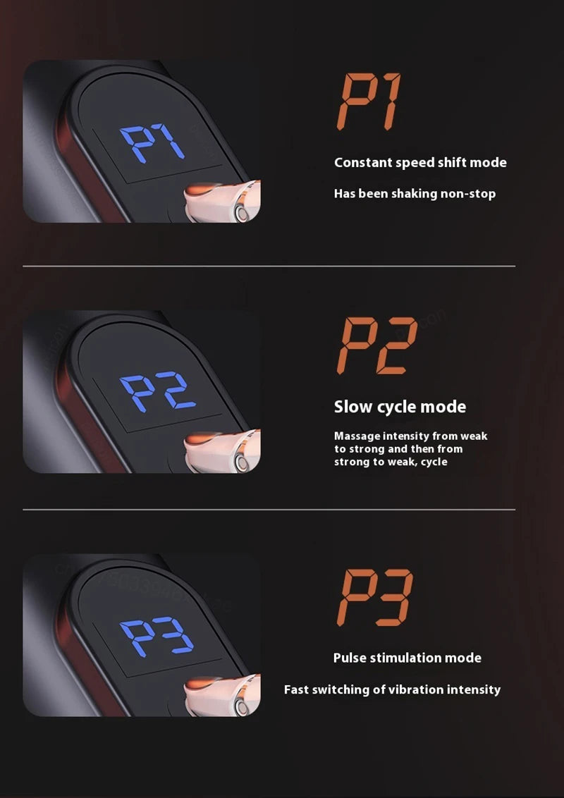 This image showcases the intuitive LED control interface, offering 6 adjustable intensity levels and 3 specialized massage modes. The digital display provides clear real-time feedback.
